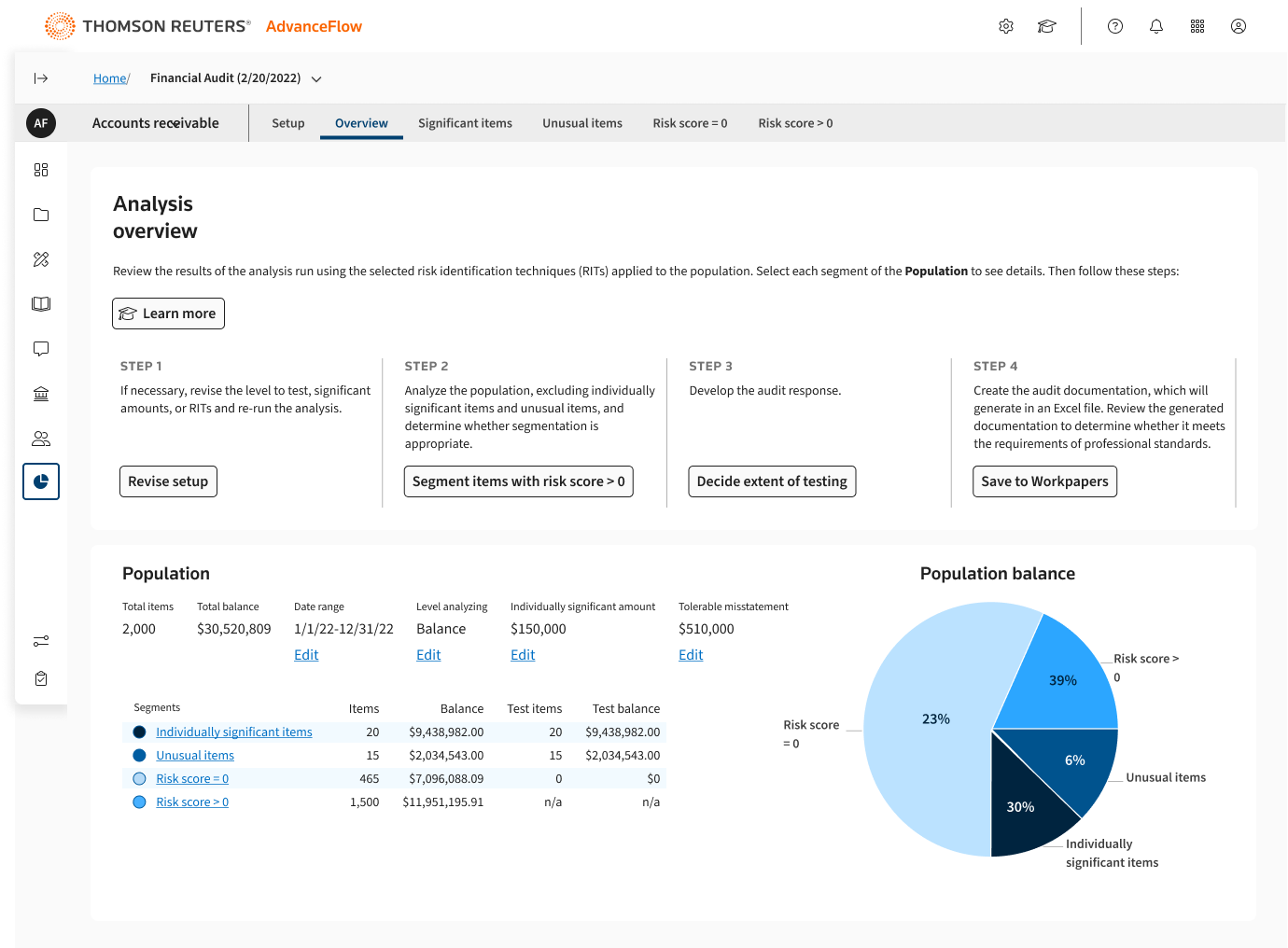 An AI solution that enables auditors to analyze entire data populations and identify transactional anomalies.